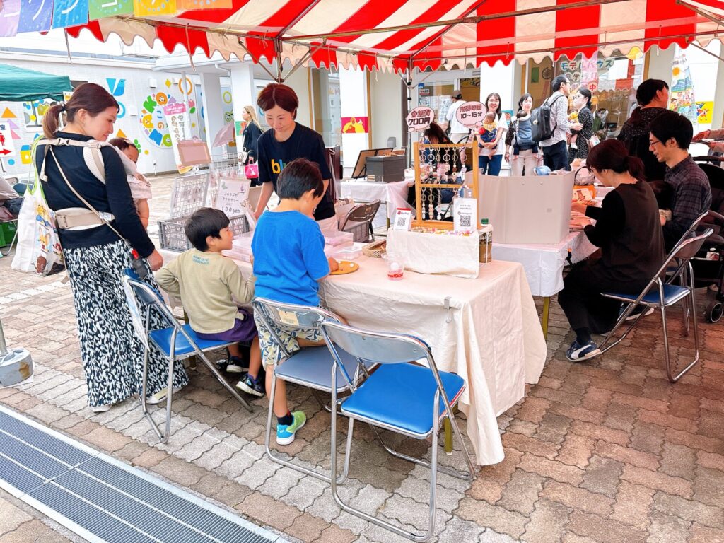 会場内では出店ブースも大盛況!地元で活躍する講師さんたちのブースでは、参加者さんとのおしゃべりもはずみ、アットホームな雰囲気が広がっていました。かわいい雑貨やワークショップなど、親子で楽しめる内容に来場者の皆さんも大満足の様子でした。