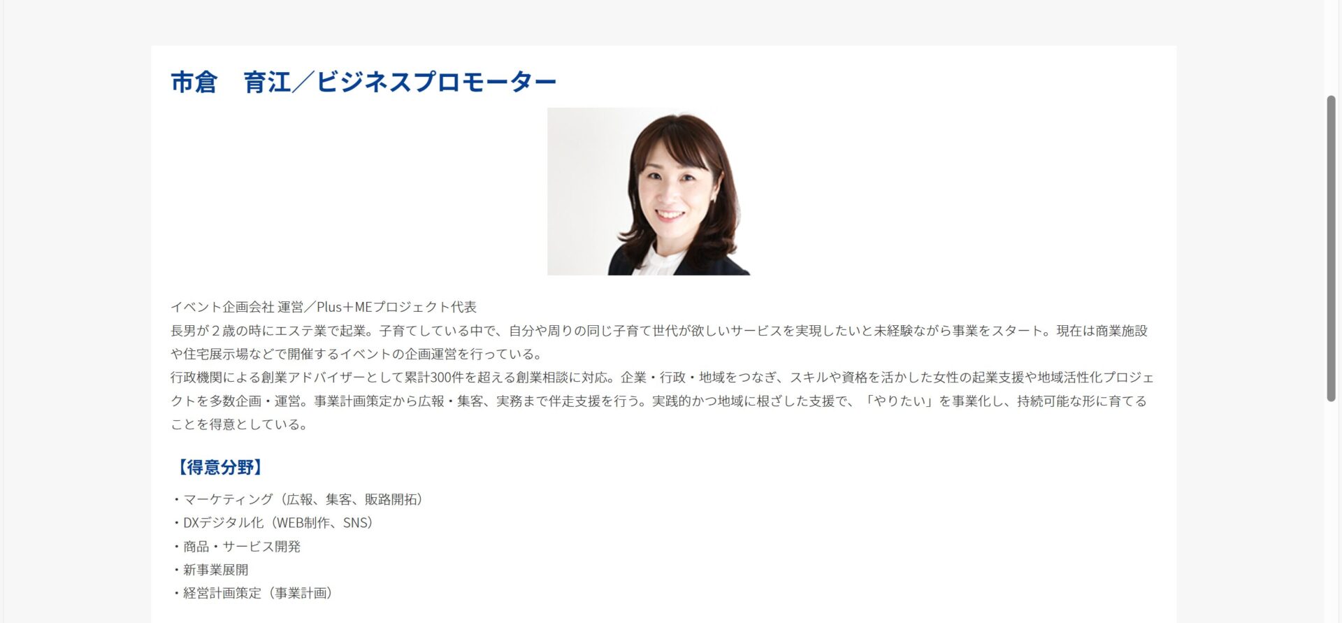 今回私がお手伝いさせていただくのは、創業間もない方の支援。すでに創業している方はもちろん、これから何かやりたいかたもぜひご相談ください。小さなお店や個人商店などは相談相手が居ないのも経営者の方が抱える大きな悩みだったりします。私も身近に相談できる相手がおらず、本当に試行錯誤(現在もですが・・・)しならがの経営でした。自分だけの視点ではなく、第三者の視点や、プロのコンサルタントによる相談はとても心強いと思います。