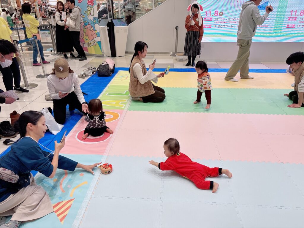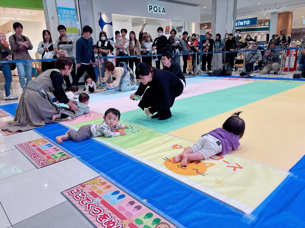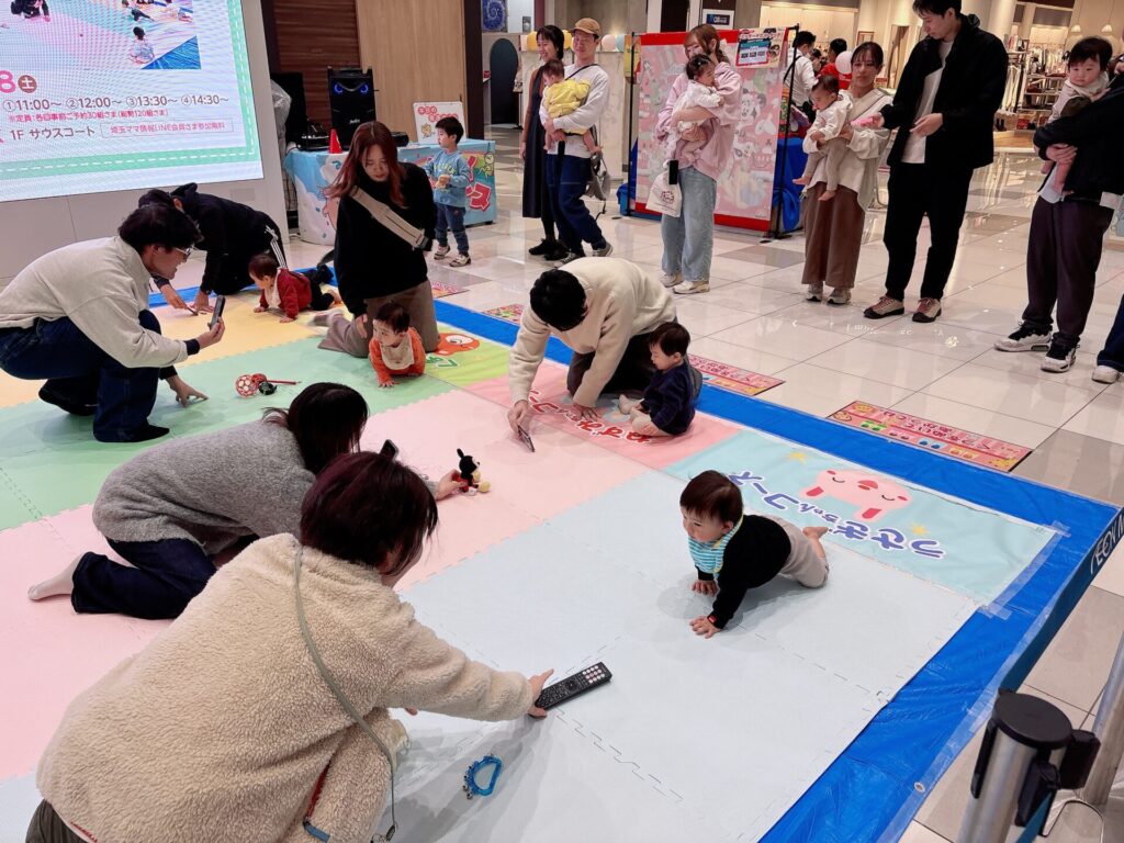 11月8日(土)、イオンモール上尾の1階サウスコートにて、ハイハイレースを開催させていただきました。ずりばい、ハイハイができる7か月~12か月くらいの赤ちゃんが大集合!ハイハイの成長の記念に、家族の思い出になる大人気のイベントです。