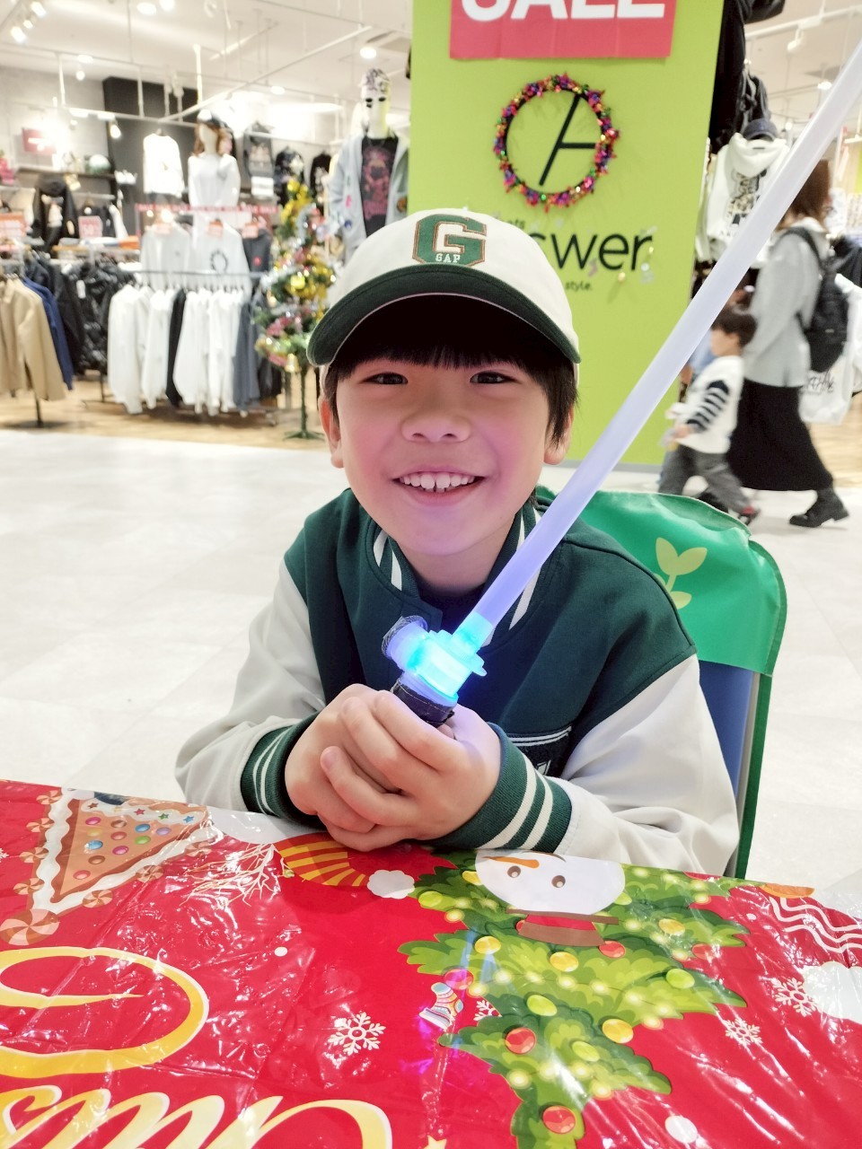 お次は、光るライトセーバーづくり。光る色は4色の中から選べるので、「どの色にしようかな?」と悩む時間からすでにワクワクした様子でした。完成すると、スイッチを入れてピカッ!明るい場所でも十分きれいですが、少し暗い場所ではさらに光が際立ちます。お子さんたちのテンションも一気にアップ!やっぱり子どもは剣が大好きなんですね^^